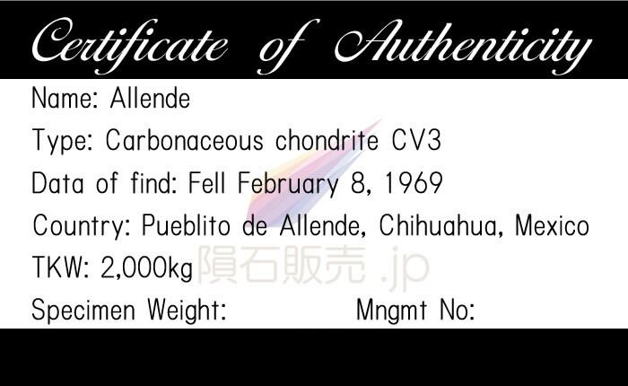 【種類】石質隕石 炭素質コンドライト CV3