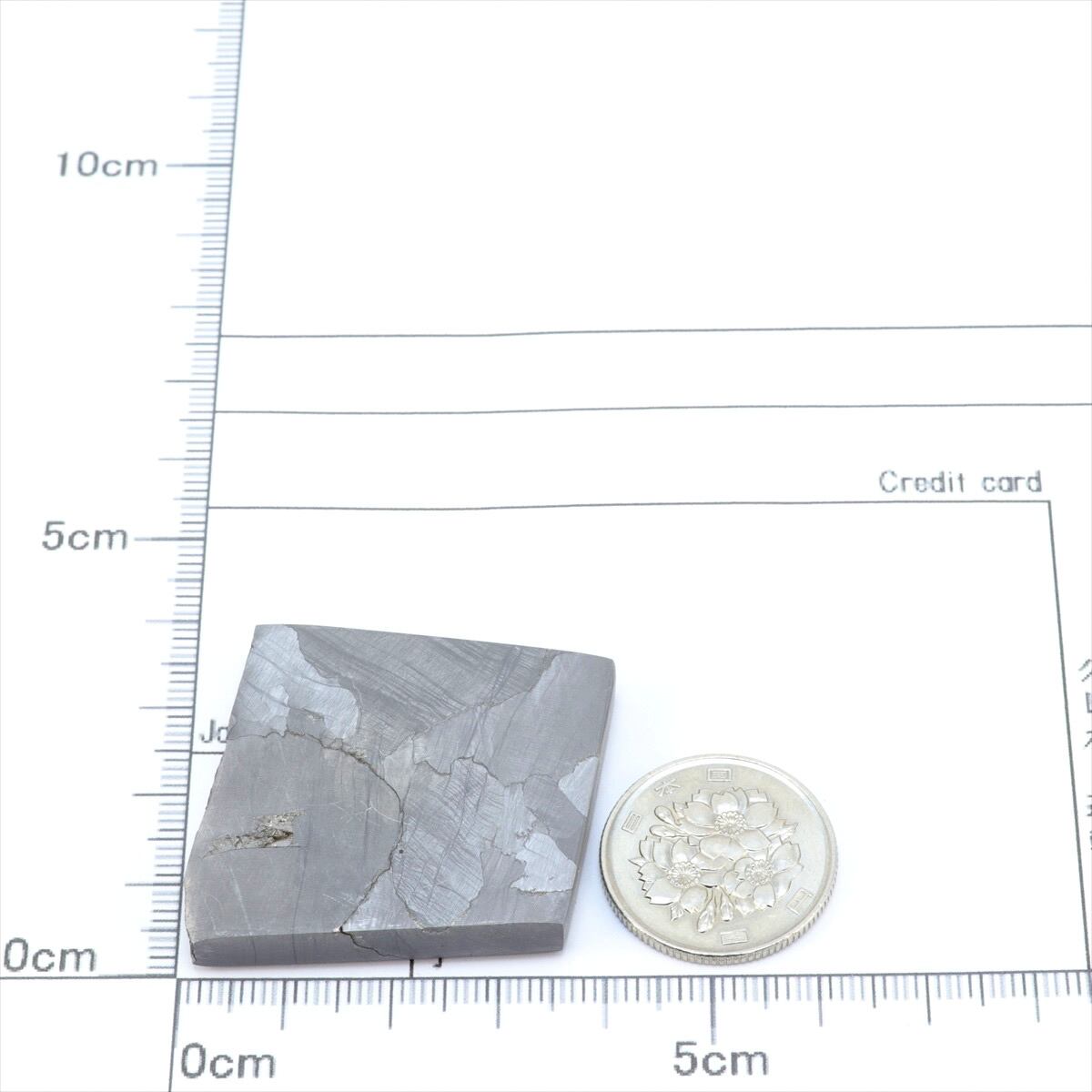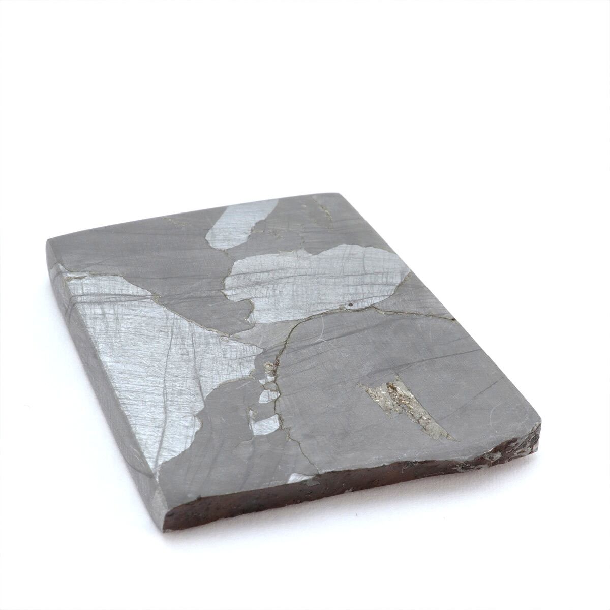 【コメント】多数あるキズのような線はノイマンバンドと呼ばれるものです。シホテアリンはウィドマンシュテッテン構造のバンド幅が広くエッチングしても構造が出ないものもあります。ノイマンバンドとウィドマンシュテッテン構造が出ているスライスされた標本は珍しいと思います