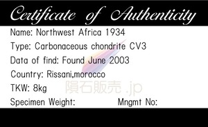 NWA1934 隕石 5.8g 炭素質コンドライトCV3 石質隕石 原石 標本 M2602