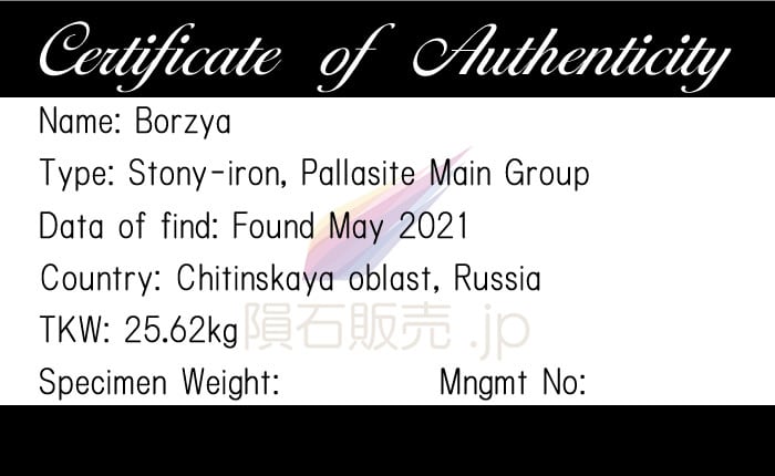 ボルジャ 隕石 2.2g パラサイト 石鉄隕石 標本 Borzya M2602