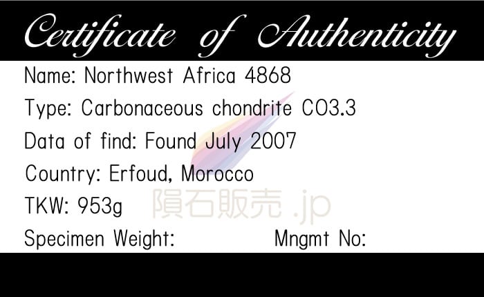 NWA4868 隕石 6.5g 炭素質コンドライトCO3.3 石質隕石 原石 標本 M2601