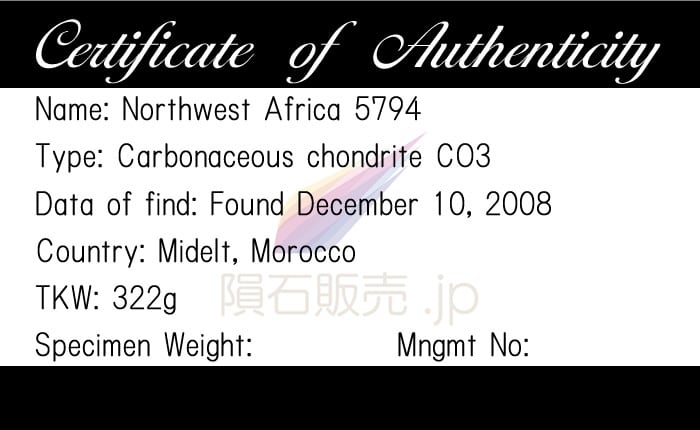 正式な隕石名はNorthwest Africa 5794です。