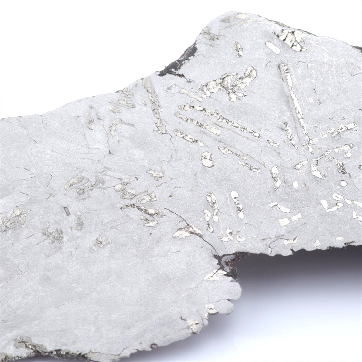 オクタヘドライトという名前はテーナイトの結晶格子の角にカマサイトが成長し八面体(オクタへドロン)構造になることに由来しており、酸処理を施すとカマサイトよりも酸に溶けにくいテーナイトが浮かび上がり特徴的な模様のウィドマンシュテッテン構造が現れます。ウィドマンシュテッテンとは構造を一番初めに論文として発表したカウント・アロイス・フォン・ウィドマンシュテッテン氏からきています。