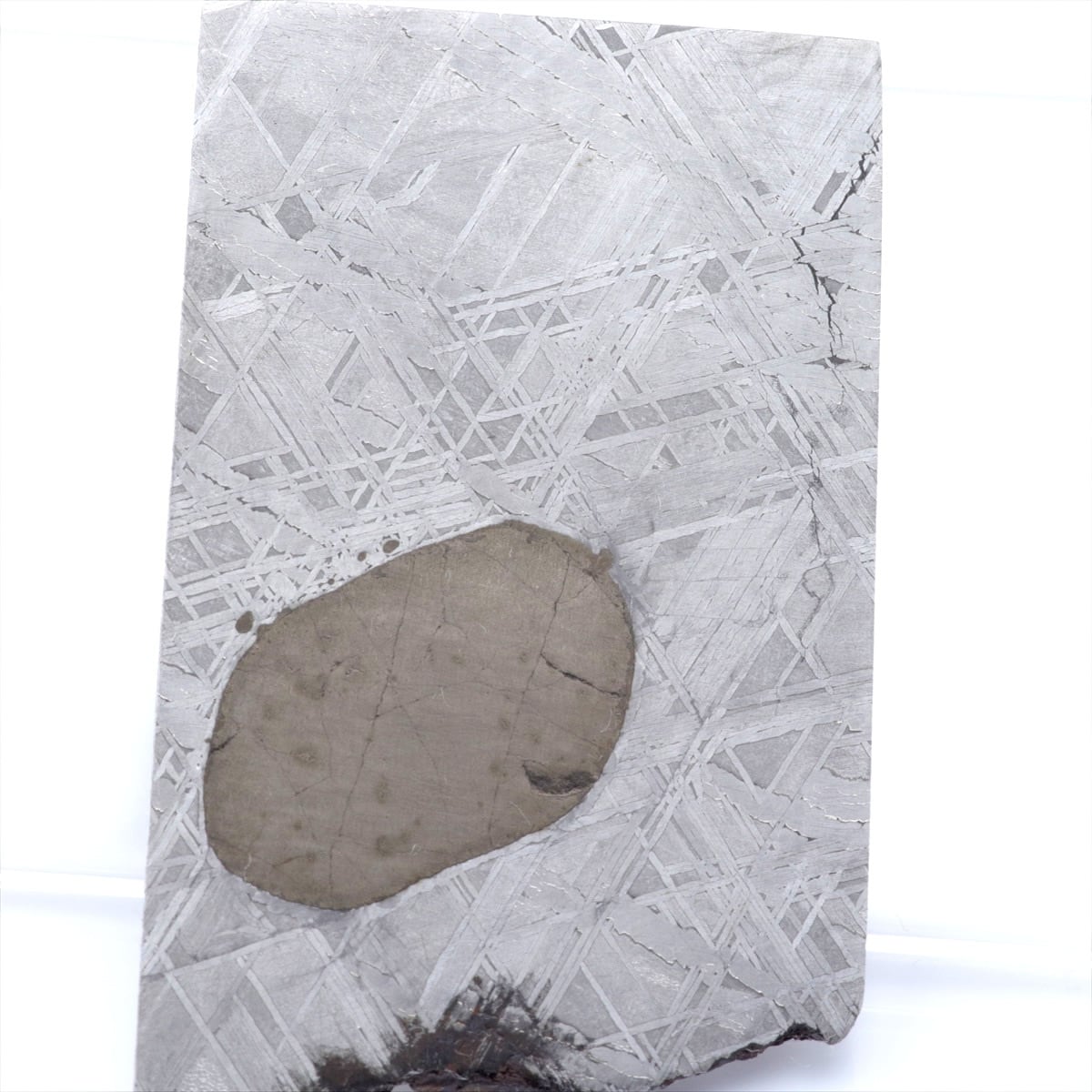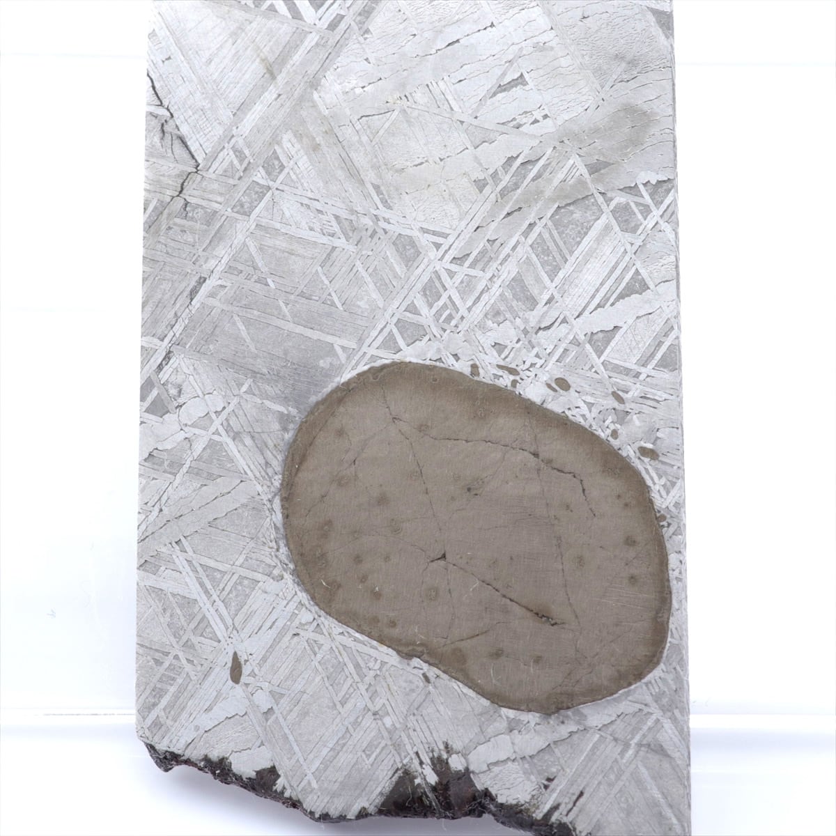紀元前約100万年に現在のスウェーデンとフィンランドの国境の西にあるスカンジナビア北部に落下したとされています。総質量は230kgの鉄隕石で1910年にHogbom教授がムオニオ川沿いのMuonionalustaという地名にちなんでムオニオナルスタと名づけました。研究によれば地球上に落下して以来、4回の氷河期を経験しており北極のツンドラにある氷山や氷堆石からも発掘されています。鉄隕石の中でもウィドマンシュテッテン構造が美しく出る隕石として人気がありますが飛散地域が北極圏にあるためにメテオライトハンターでも探知が困難で市場に流通している量も多くはない隕石です。