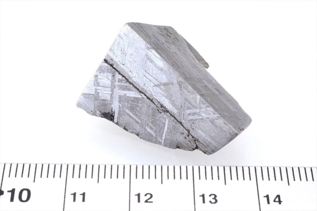 オクタヘドライトという名前はテーナイトの結晶格子の角にカマサイトが成長し八面体(オクタへドロン)構造になることに由来しており、酸処理を施すとカマサイトよりも酸に溶けにくいテーナイトが浮かび上がり特徴的な模様のウィドマンシュテッテン構造が現れます。ウィドマンシュテッテンとは構造を一番初めに論文として発表したカウント・アロイス・フォン・ウィドマンシュテッテン氏からきています。