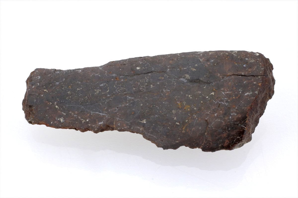金属鉄(元素ではなく金属状態の鉄)の量が少ないのがL(Low iron)です。重量の20-25%が全鉄で、4-10%が結合していない金属鉄なので、あまり磁石にくっつかず内部に見える金属片も少ないです。普通コンドライトの中ではLが地球への落下が一番多く、酸化された状態の鉄を多く含むので鉄橄欖石や紫蘇輝石に富んでいます。