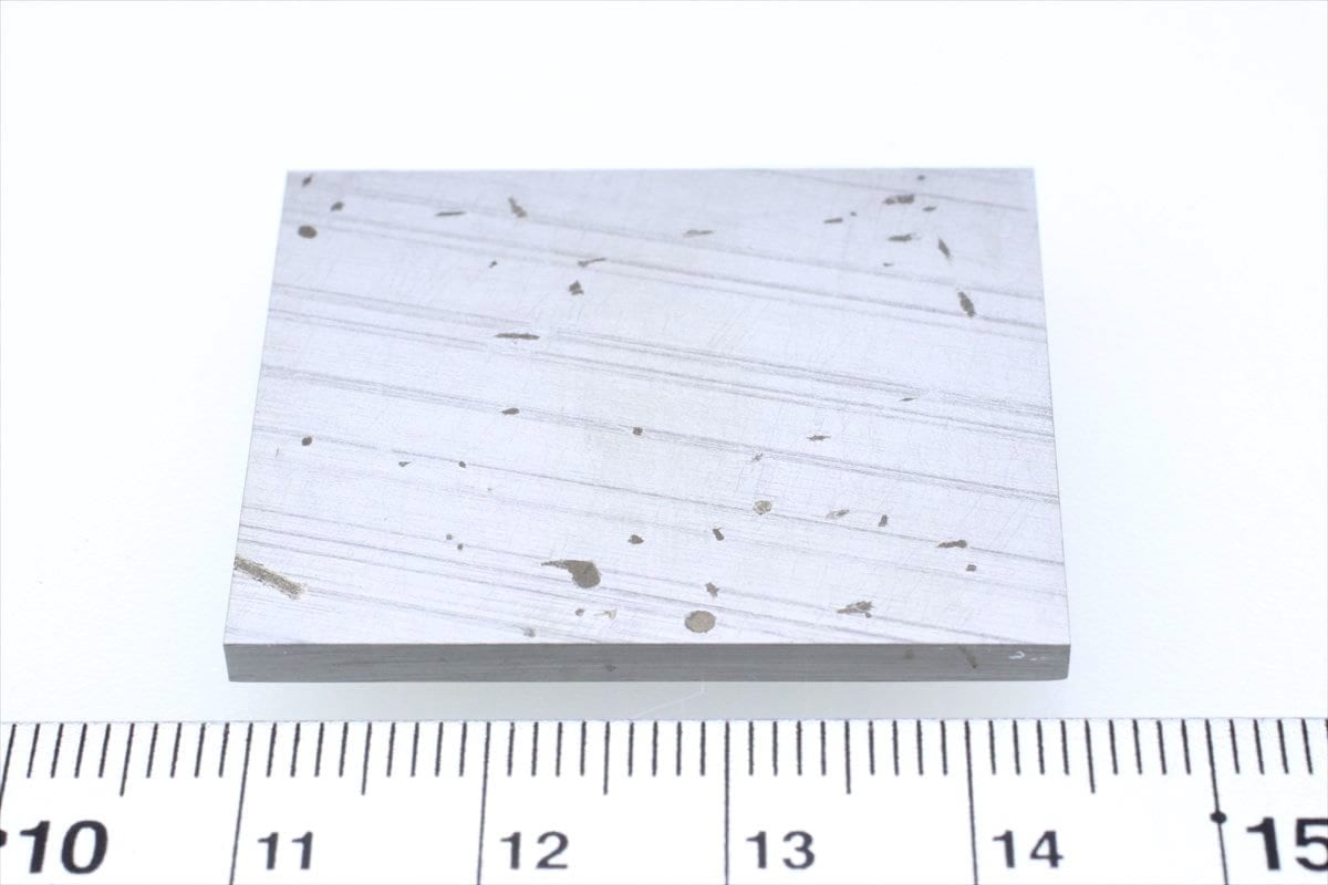 エッチングされた断面はノイマン線がよくわかり、カマサイトの特性を持つ六面体構造を示しています。