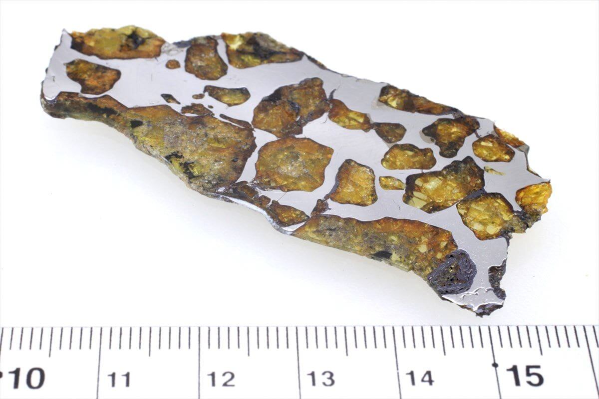 パラサイトの鉄-ニッケル部分はオクタへドライトなのでエッチングによりウィドマンシュテッテン構造が現れ、トロイライトやシュライバーサイトが含まれていることも多く、パラサイトの中にはブレナムのように空気に触れると酸化しやすい(錆びやすい)不安定なものやセイムチャンのように酸化しにくいものもあり様々です。