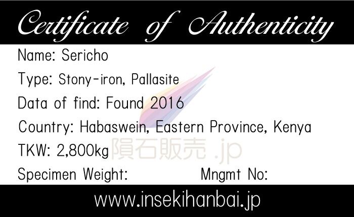 2016年に2人の兄弟が彼らのラクダを探していて、ハバスウェインの西部にあるセリコの南でいくつかの大きくて緻密な石に遭遇しました。実は、この岩石は何十年も前からそこにありラクダ飼いたちに知られていましたが隕石とは認識されていませんでした。しかし、この地域には他に岩石がないので兄弟は隕石だと判断し、数週間かけて集めて2017年1月に隕石ハンターのMichael Farmer氏のもとにジャイアントパラサイトの件名を付けて107kgの岩石の写真を添付した電子メールを送り、Michael Farmer氏と仲間が現地に赴いたことで新しく発見された隕石となります。風化も進んでいなかったことからセリコ隕石からは良質なパラサイトの標本が手に入ります。