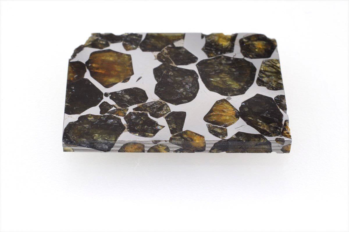 丸みのある粗粒状のカンラン石とその間を埋める鉄-ニッケル合金から出来ており、パラサイトという名前はシベリアの山中にあるクラスノヤルスク付近で発見された隕石を研究したドイツの博物学者ペーター・ジーモン・パラス氏にちなんで1772年に名付けられました。
