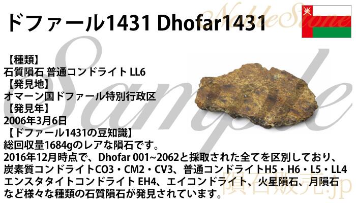 ドファール特別行政区の砂漠地帯では様々なタイプの隕石が発見されており2022年12月現在ではDhofar001-2124が存在し、炭素質コンドライトCO3・CM2・CV3、普通コンドライトH5・H6・L5・LL4エンスタタイトコンドライト EH4、エイコンドライト、火星隕石、月隕石など様々な種類の隕石が発見されています。