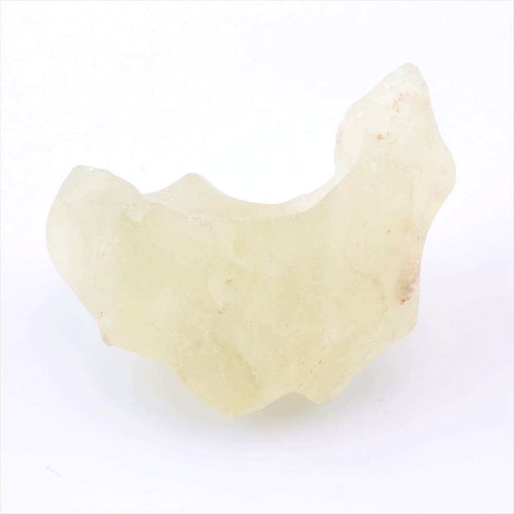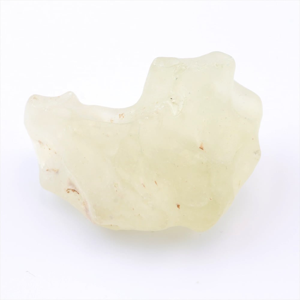 海外ではリビアンデザートガラスまたはグレートサンドシーガラスとも呼ばれており、約2900万年前に隕石が衝突した衝撃で出来たガラス質の結晶だとされ、表面は砂漠の砂で磨かれ角が滑らかになっているものがほとんどです。モルダバイトよりも古い歴史を持ち古代エジプトの人々はリビアングラスに特別な力があると信じてきました。ツタンカーメン王の墓からはリビアングラスを使った両刃の手斧やアンティークガラスで作られた石炭船が出土し、この絢爛豪華な船の中央にはリビアングラスで作られたスカラベが装飾されており、古代エジプト人達により大切に扱われてきたことを感じさせます。