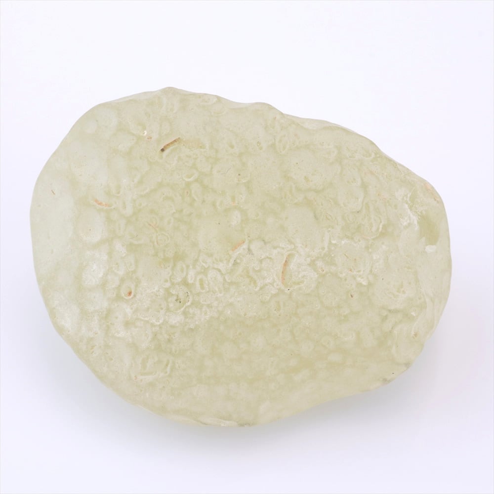 海外ではリビアンデザートガラスまたはグレートサンドシーガラスとも呼ばれており、約2900万年前に隕石が衝突した衝撃で出来たガラス質の結晶だとされ、表面は砂漠の砂で磨かれ角が滑らかになっているものがほとんどです。モルダバイトよりも古い歴史を持ち古代エジプトの人々はリビアングラスに特別な力があると信じてきました。ツタンカーメン王の墓からはリビアングラスを使った両刃の手斧やアンティークガラスで作られた石炭船が出土し、この絢爛豪華な船の中央にはリビアングラスで作られたスカラベが装飾されており、古代エジプト人達により大切に扱われてきたことを感じさせます。