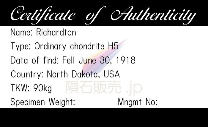 リチャードソン 隕石 1.8g 普通コンドライトH5 石質隕石 原石 標本 Richardton M2501