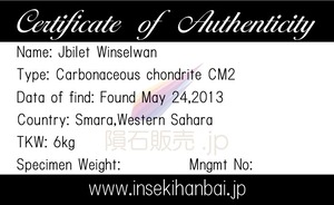ジビレットウィンセルワン 隕石 2.0g 炭素質コンドライトCM2 石質隕石 標本 Jbilet Winselwan M2501