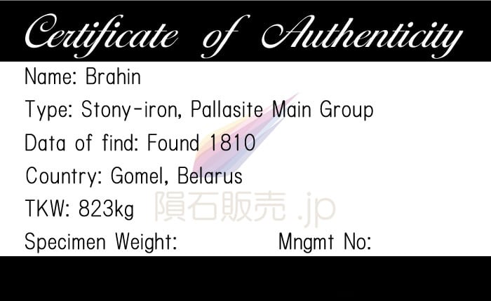 ブラヒン 隕石 37.9g パラサイト 石鉄隕石 標本 Brahin M2502